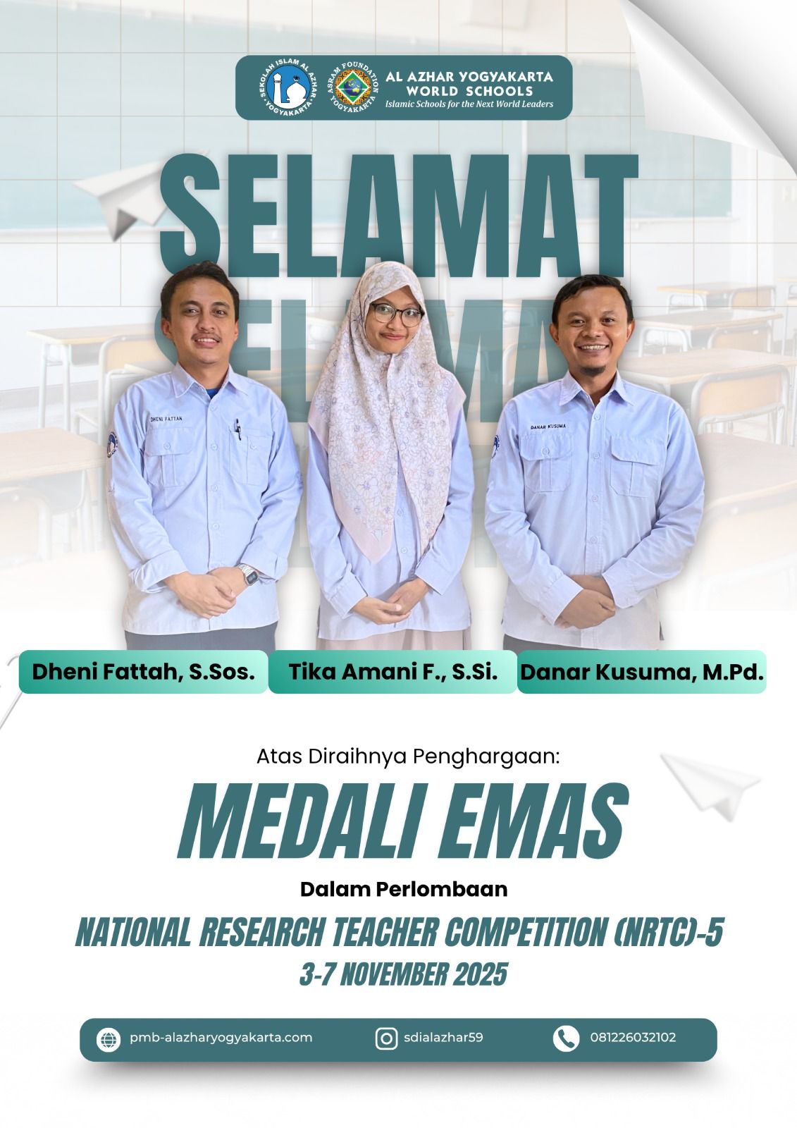 Emas untuk Guru Inspiratif: Riset Kolaborasi Sekolah dan Masyarakat Bawa SD Islam Al Azhar 59 Wonosari ke Puncak Nasional