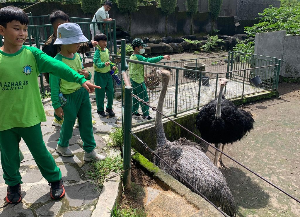 Setibanya di lokasi, antusiasme siswa tampak jelas saat mereka mengikuti berbagai aktivitas interaktif. Anak-anak diajak menanam cabai, berkenalan dengan reptil, memberi makan kelinci, mengenal satwa nokturnal, hingga melihat burung unta dari jarak dekat. Beragam pengalaman tersebut memberi kesempatan bagi siswa untuk belajar langsung dari alam melalui pengamatan dan interaksi nyata.