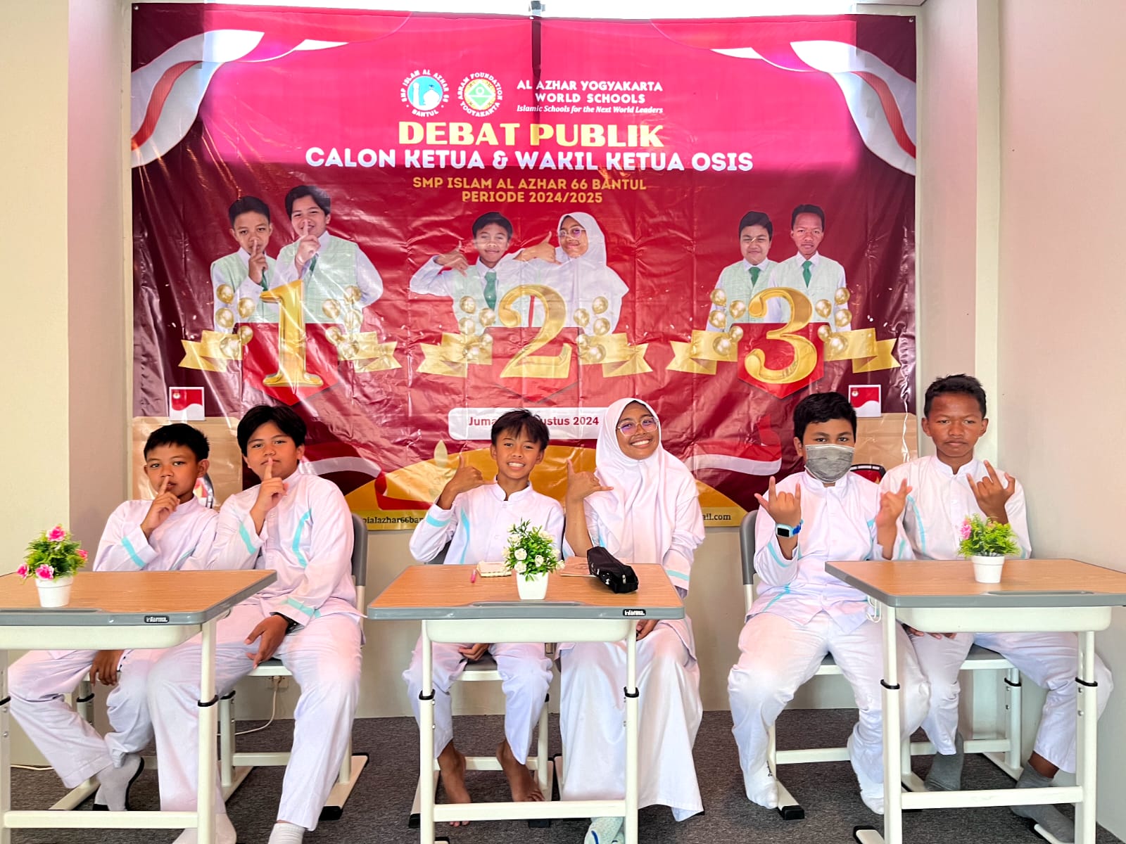 BANTUL – Sekolah Menengah Pertama Islam Al Azhar (SMPIA) 66 Bantul mengadakan debat publik calon ketua dan wakil ketua OSIS (Ketos dan Waketos), Jumat (30 Agustus 2024). Debat dilaksanakan di Pusat Sumber Belajar (PSB) sekolah dan diikuti oleh tiga pasangan calon (paslon). Acara debat dipandu oleh moderator, Nurul Fatimah MPd.