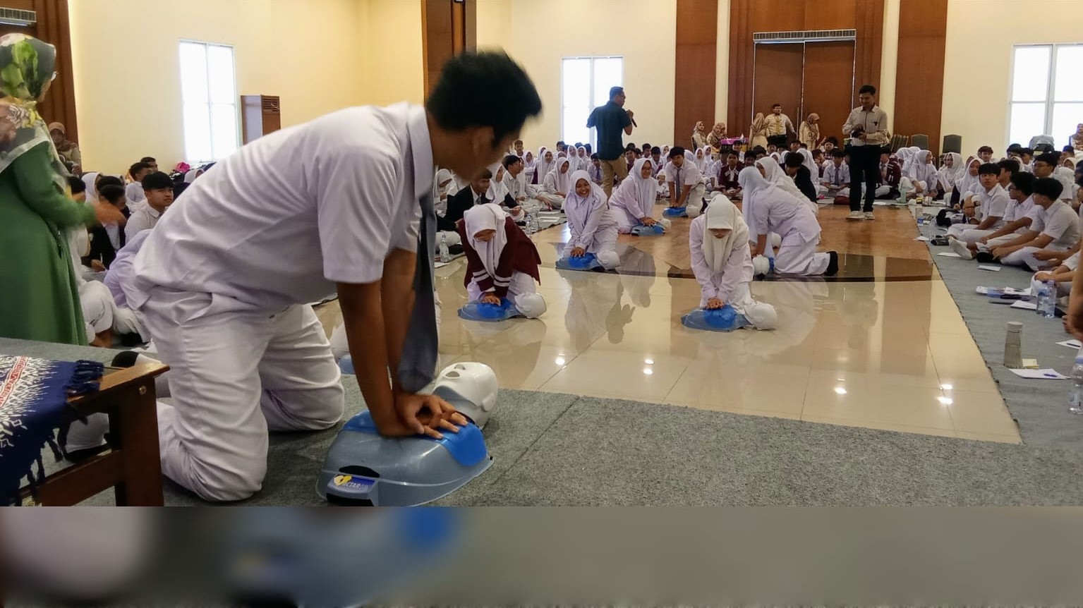Sementara itu dr Gagah Buana Putra SpJP menjelaskan teori mengenai pentingnya memeriksa respons pasien, membuka jalan napas, memeriksa pernapasan, dan memberikan kompresi dada sesuai dengan pedoman resusitasi jantung paru (CPR). Para murid kemudian berlatih langsung, belajar bagaimana melakukan kompresi dada yang benar, ventilasi buatan, serta cara menggunakan Automated External Defibrillator (AED).