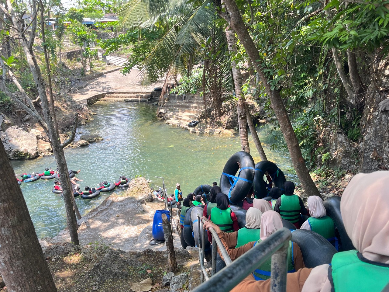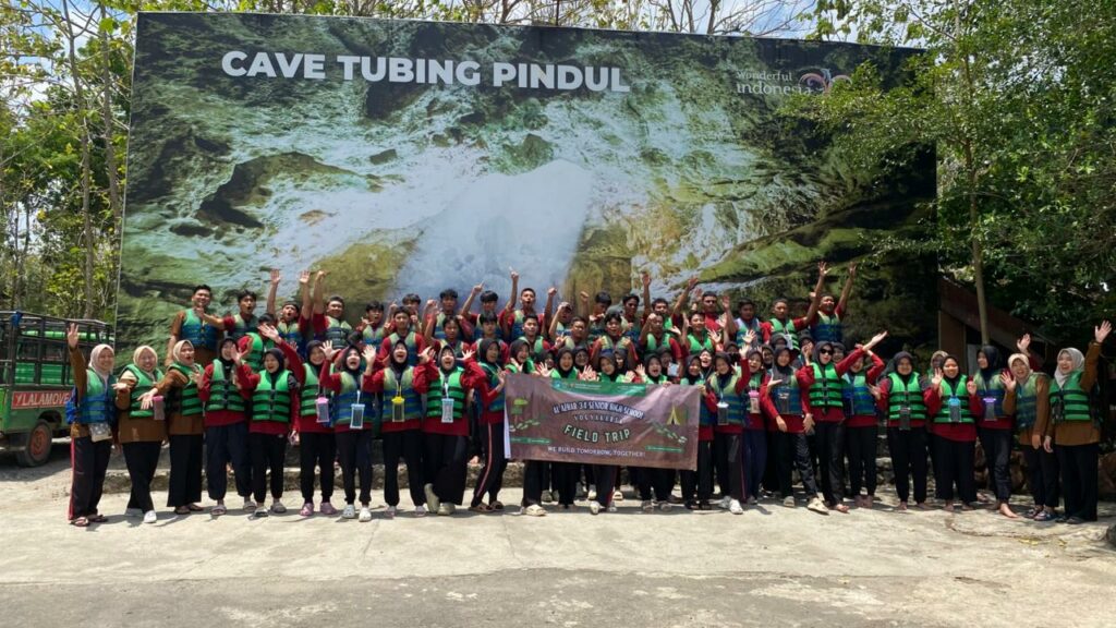 GUNUNGKIDUL – A field trip to Pindul Cave offers students an unforgettable chance to explore nature through immersive experience. Students, teachers, and guides all work together to journey into the cave. We float through the underground river using tires, wearing life jackets and helmets for safety in the karst region where Pindul Cave is located in Yogyakarta. We do this trip to appreciate cave geology, deepen conservation awareness, and enrich learning across many subject under professional guidance, using top safety equipment and structured lesson plans.