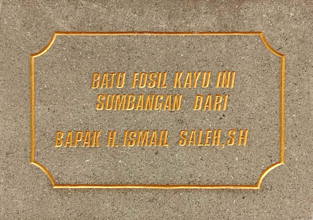 Tak berhenti di situ, Ismail Saleh, S.H. juga mengusulkan agar fosil kayu itu dilengkapi dengan hiasan batu-batuan laut dari Nusa Tenggara Timur. Batu-batuan tersebut merupakan sumbangan Frans Matero, seorang pengusaha asal Surabaya. Agar tampil maksimal, batu-batuan itu dipoles oleh PT Pupuk Sriwijaya (Pusri) Palembang, dengan dukungan UBIBAM (Unit Bina Industri Batu Mulia), mitra binaan Pusri.
