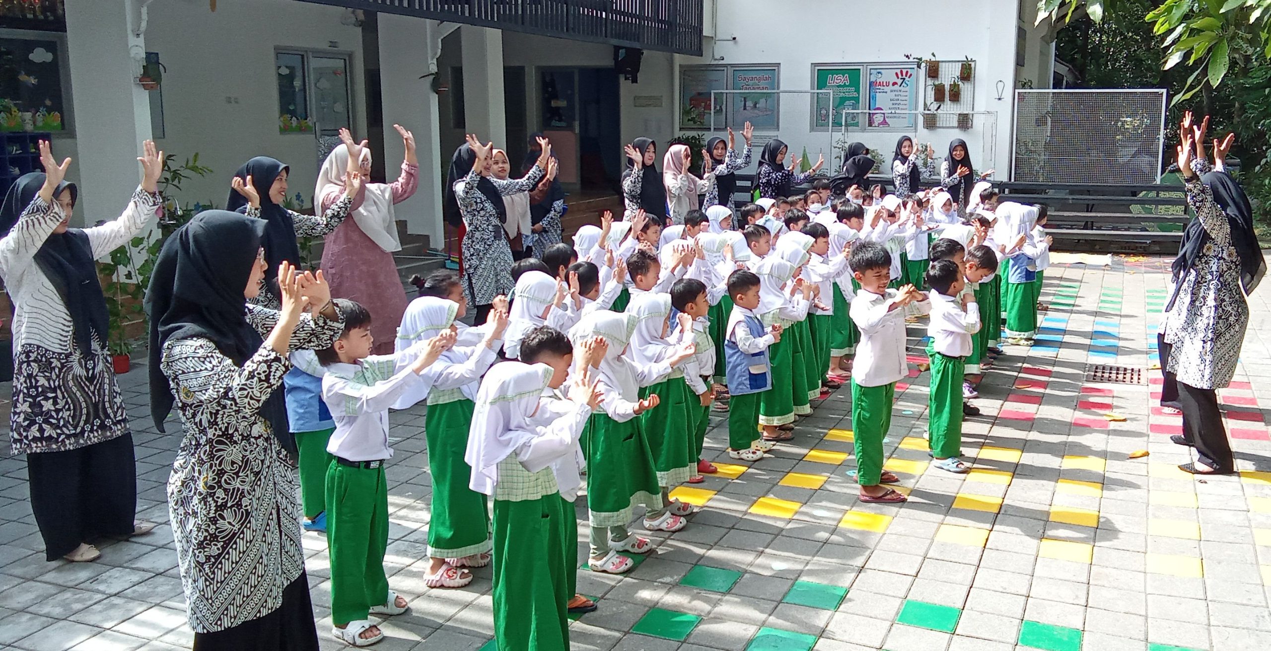 Para guru dengan sabar dan telaten membimbing setiap gerakan dan alur kegiatan, memastikan seluruh rangkaian acara berjalan lancar nantinya. Tawa ceria anak-anak berpadu dengan arahan guru menciptakan suasana hangat yang mencerminkan kebersamaan, selaras dengan tema yang diusung tahun ini. Latihan ini tidak hanya bertujuan untuk kesiapan teknis, tetapi juga membangun rasa percaya diri anak-anak agar dapat tampil maksimal di hadapan orang tua dan tamu undangan.