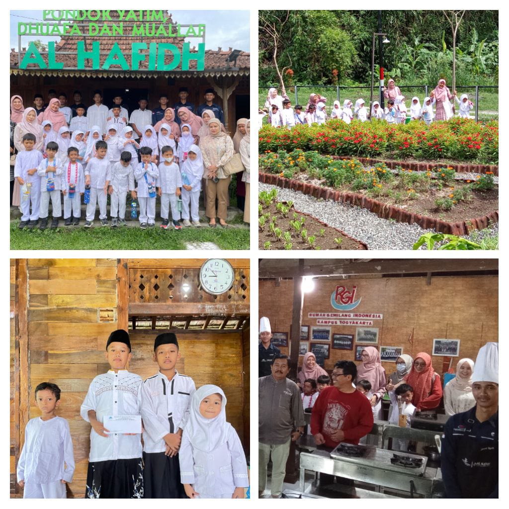 Setelah kegiatan berbagi, rombongan kecil itu melanjutkan perjalanan ke Rumah Gemilang Indonesia (RGI) — tempat para santri Pondok Yatim Dhuafa dan Muallaf Al Hafidh mengasah berbagai keterampilan hidup, salah satunya memasak. Anak-anak tampak antusias menyaksikan para santri berlatih membuat hidangan sederhana. Momen ini menjadi pengalaman inspiratif yang menanamkan nilai kerja keras, kemandirian, dan kesadaran bahwa berbagi ilmu serta semangat juga merupakan wujud kebaikan.
