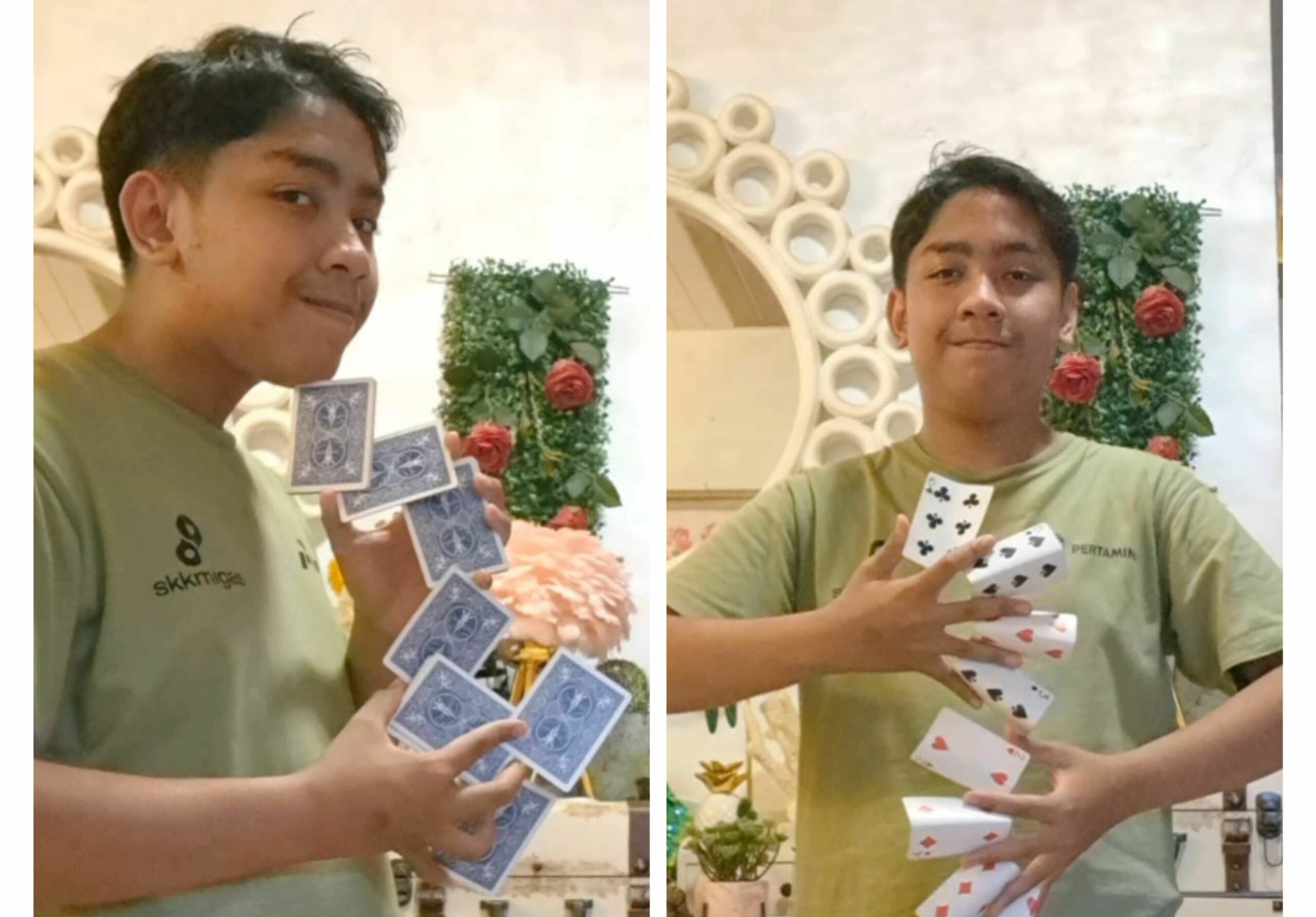 “Teman-teman sering minta aku sulap pas istirahat. Kadang malah rebutan mau ditebak kartunya,” ujarnya sambil tertawa.