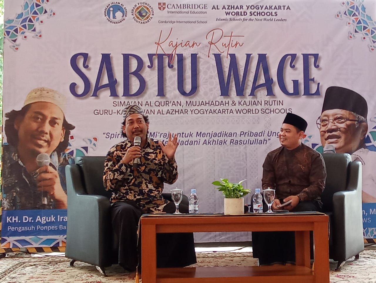 Hal tersebut disampaikan KH Dr Aguk Irawan MN Lc MA, Pengasuh Pondok Pesantren Baitul Kilmah, Bantul, dalam Kajian Rutin Sabtu Wage: Sima’an Al-Qur’an, Mujahadah, dan Kajian Guru-Karyawan Al Azhar Yogyakarta World Schools (AYWS), yang digelar di Masjid Al Hafidh, Kompleks Kampus AYWS Sleman, Sabtu (13/12/2025).