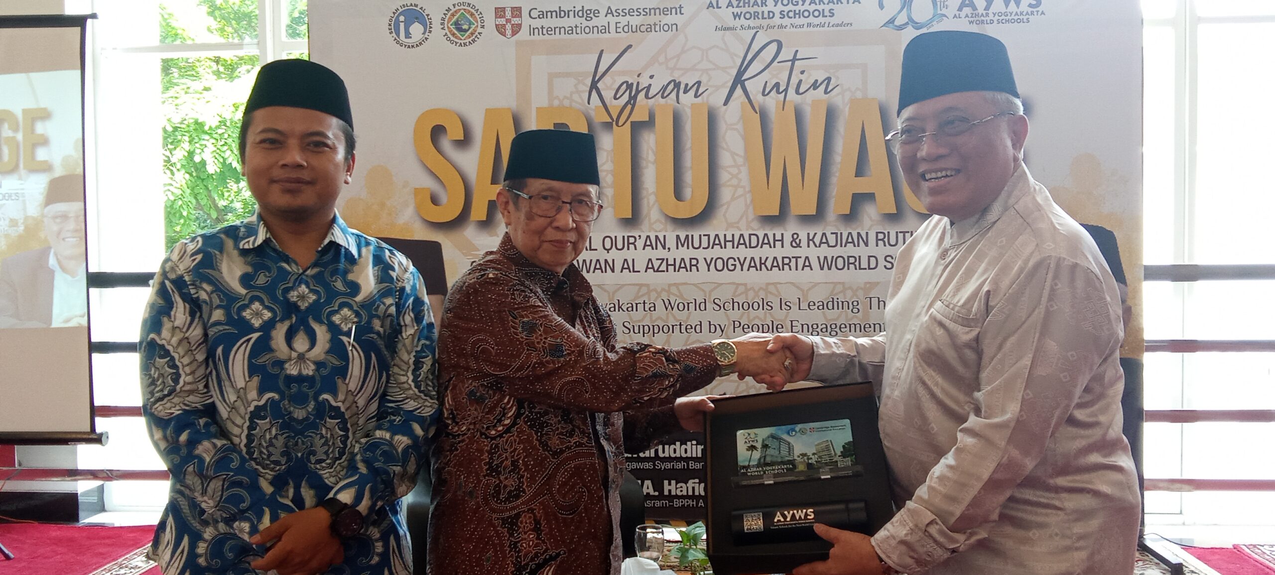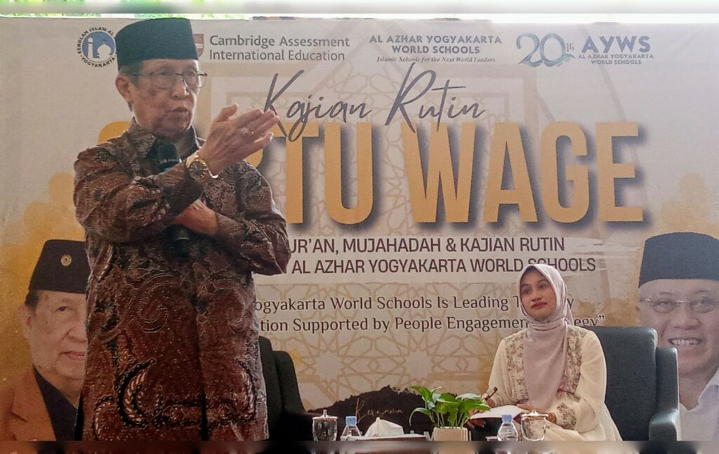 SLEMAN – Pengajian rutin Sabtu Wage yang digelar di Masjid Al Hafidh Kampus 1 Al Azhar Yogyakarta World Schools (AYWS), Sabtu (4/10/2025), menghadirkan narasumber istimewa, Prof Drs Syafaruddin Alwi, MS, HR.Sp, CSA. Guru besar yang dikenal sebagai pakar sumber daya manusia itu menyampaikan materi bertajuk “Al Azhar Yogyakarta World Schools is Leading the Way in Global Education Supported by People Engagement Strategy.”
